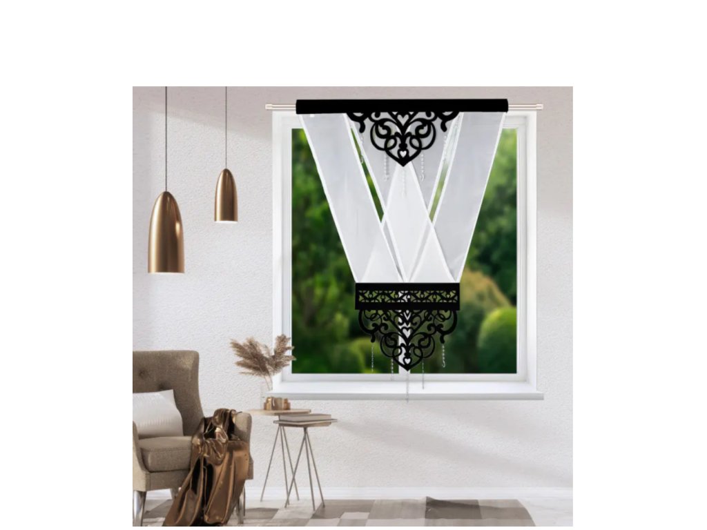Panel Mandy je vyroben z bílého voálu, který má zajímavé uspořádání do tvaru "V" ve středové části okna. Panel je kombinaci jednoduchého voálu, prolamovaného vzoru, který spojuje dvě části voálové látky a pruhů čtvercové zirkonie. Rozměry panelu jsou 120 × 160 cm. A díky všité univerzální pásce jej lze zavěsit na různé typy záclonových tyčí nebo na žabky. Prolamované panely mohou být zajímavou náhradou tradičních závěsů. Model Mandy zakryje okno stejně dobře jako typický závěs. Bílý dekorativní panel lze samozřejmě úspěšně kombinovat s tradičními závěsy.