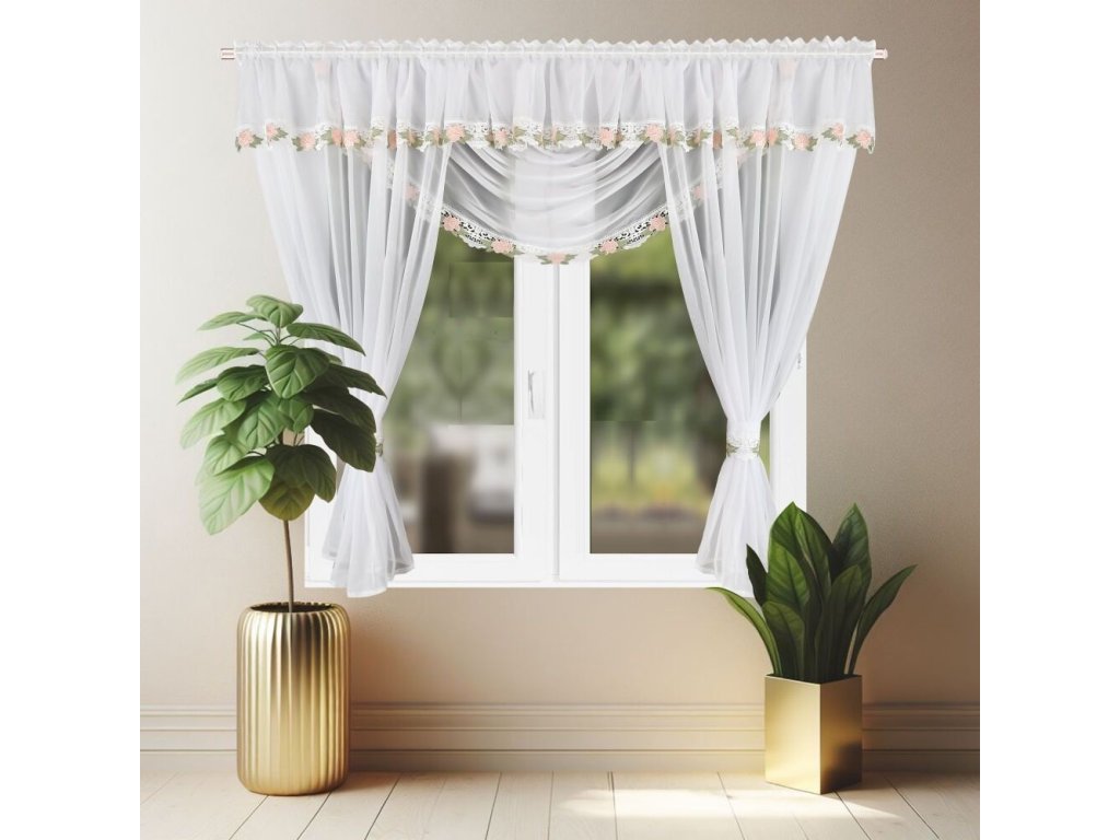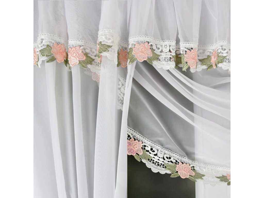 Nádherná kusová záclona z hladkého voálu. Na horním okraji je našitá řasící pásce, pomocí které můžete upravovat šířku záclony a tunýlkem na tyč o průměru 3,5 cm. Je též přizpůsobena k pověšení na háčky nebo žabky.