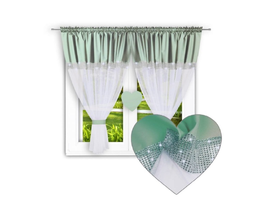 Hotové záclony - Srdíčka mátovo zelená 400x145 cm