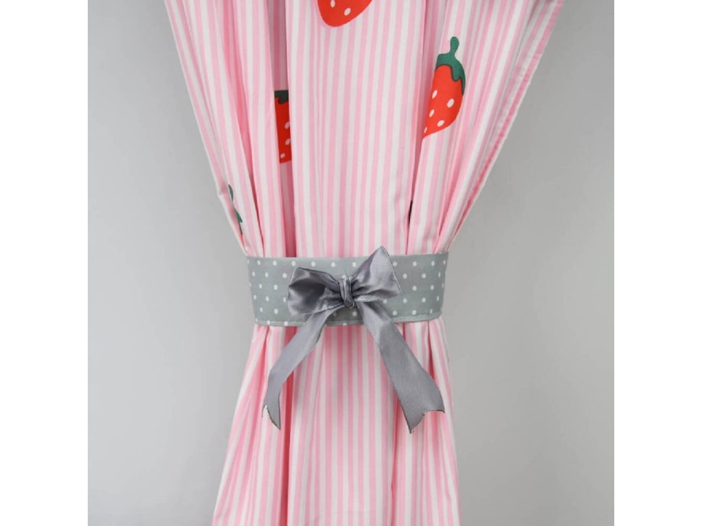 Sada dvou záclon s panelem. Záclony vyrobené z lehce lesklé látky v bílé barvě s motivem černých srdcí. Souprava má zašívanou pásovou pásku pro snadnou instalaci přímo na závěsovou tyč nebo klipy. Boky a spodní část záclonu jsou zakončeny lemem. Motiv srdce v tlumených barvách dodává tkanině jemné kouzlo.