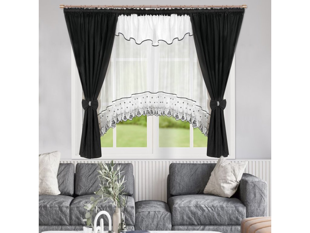 Sada záclon se závěsem L 595 černá/bílá 400x160 cm