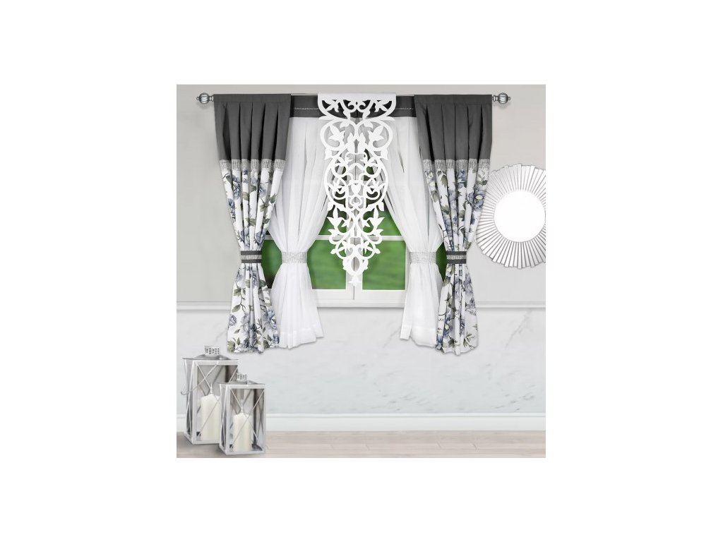 Sada záclon se závěsem Zaira šedá 260x180 cm