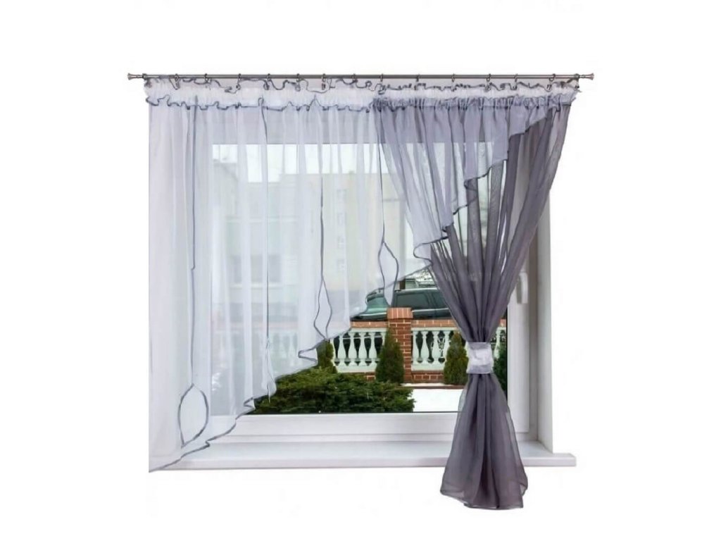 Hotová kusová záclona z hladkého voálu. Nahoře je opatřena řasící stuhou díky které můžete měnit šířku záclony a tunýlkem na tyč o průměru 3,5 cm. Je též přizpůsobena k pověšení na háčky nebo žabky. Šíře záclony je 400 cm a výška 150 cm. Dá se nařasit.