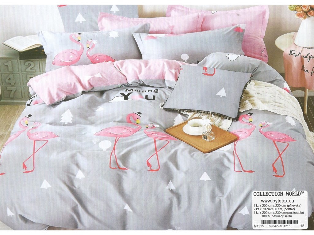 Francouzské saténové povlečení Flamingo 200x220 cm 70x80 cm