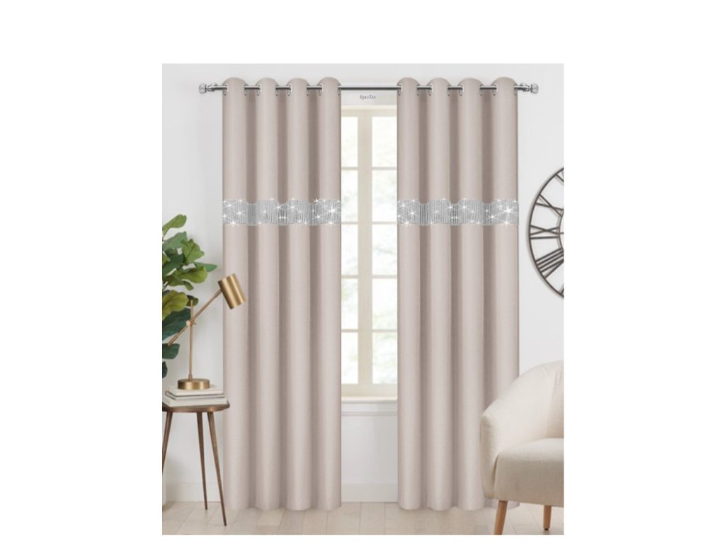 Elegantní a extrémně efektivní závěsy Amálíe - vyrobena z vysoce kvalitního materiálu panama stretch. Závěs nahoře je zdoben stříbrnou páskou se zirkony širokými 12 cm! Závěsy dodají interiéru jedinečnou atmosféru a charakter! Dodají eleganci a změní interiér.