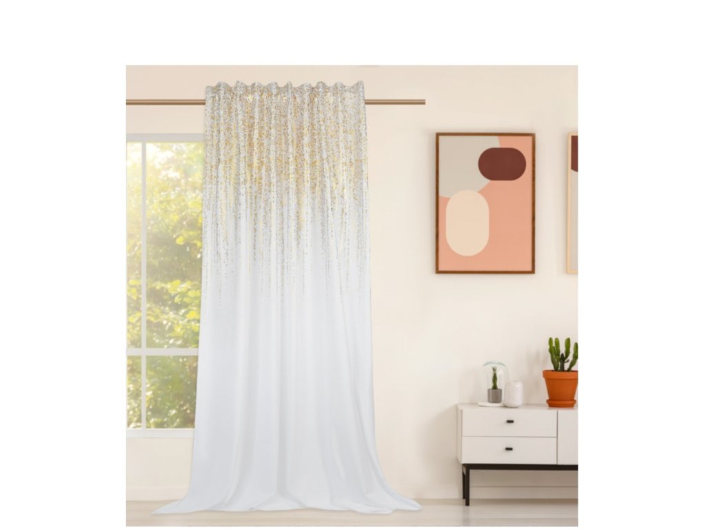 Sametový závěs Kamila 140x250 cm, bílý/zlatý(cena za 1 kus)